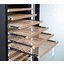 Полки в винных шкафах позволяют размещать бутылки для хранения в горизонтальном положении. Это необходимо, чтобы пробка постоянно смачивалась жидкостью и не пересыхала. Плотно закрытая пробка гарантирует, что внутрь бутылки не проникнет наружный воздух. Кислород, содержащийся в воздухе, может стать причиной ухудшения вкуса вина и даже его скисания. Кроме того, горизонтальное положение позволяет лучше оценить количество осадка. Материал изготовления полок выбирается, исходя из требований, предъявляемых к содержанию коллекции вин. Одним из основных требования является отсутствие или максимальное сокращение вибрации и хорошая фиксация бутылок на месте хранения. Даже если полка выдвигается, бутылки должны оставаться на своем месте. Второе требование исключает применение стеклянных полок, как в обычном холодильнике: на них почти невозможно зафиксировать бутылки.