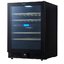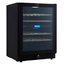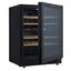 Стеклянная дверь — дополнительный изящный штрих к общему дизайну модели. Специальное покрытие защищает вино от влияния ультрафиолетовых лучей, которые проникают, если шкаф находится в солнечной комнате. Цвет корпуса — черный. Дверь можно перевесить на другую сторону, поэтому вариантов размещения его в доме становится больше.
