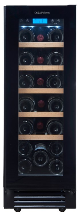 Винный холодильник CellarPrivate CP020-1TBH имеет одну температурную зону, в которой можно разместить бутылки и единовременно выставить только одну комбинацию настроек. Он встраивается в нишу, что удобно, если у вас ограничен метраж помещения. Благодаря компактным размерам данная модель — отличный выбор для офиса, гостиничного номера. Количество бутылок, которое можно разместить с учетом полной комплектации и из расчета объема бутылки 0,75 л, — 20 шт.