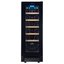 Стеклянная дверь — дополнительный изящный штрих к общему дизайну модели. Специальное покрытие защищает вино от влияния ультрафиолетовых лучей, которые проникают, если шкаф находится в солнечной комнате. Цвет корпуса — черный. Дверь можно перевесить на другую сторону, поэтому вариантов размещения его в доме становится больше.