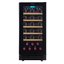 Стеклянная дверь — дополнительный изящный штрих к общему дизайну модели. Специальное покрытие защищает вино от влияния ультрафиолетовых лучей, которые проникают, если шкаф находится в солнечной комнате. Цвет корпуса — черный. Дверь можно перевесить на другую сторону, поэтому вариантов размещения его в доме становится больше.