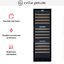Стеклянная дверь — дополнительный изящный штрих к общему дизайну модели. Специальное покрытие защищает вино от влияния ультрафиолетовых лучей, которые проникают, если шкаф находится в солнечной комнате. Цвет корпуса — черный. Дверь можно перевесить на другую сторону, поэтому вариантов размещения его в доме становится больше.