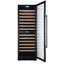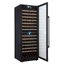 Стеклянная дверь — дополнительный изящный штрих к общему дизайну модели. Специальное покрытие защищает вино от влияния ультрафиолетовых лучей, которые проникают, если шкаф находится в солнечной комнате. Цвет корпуса — черный. Дверь можно перевесить на другую сторону, поэтому вариантов размещения его в доме становится больше.