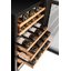 Дверца у большинства винных шкафов изготавливается из многослойного тонированного стекла. Такой материал, с одной стороны, позволяет оценивать коллекцию вин визуально, не открывая дверцу, в условиях стабильной температуры и влажности. С другой стороны, затемненное стекло с УФ-фильтром в виде напыления или специальной пленки надежно изолирует винные бутылки негативного воздействия ультрафиолетового излучения. Несколько слоев стекла обеспечивают при этом дополнительную защиту. Очень часто стекло в дверце заключается в рамку из дерева или металла. Натуральный или окрашенный металл или дерево не только способствуют прочности конструкции, но и превращают винный холодильник, особенно отдельно стоящий, в эффектный элемент обстановки.