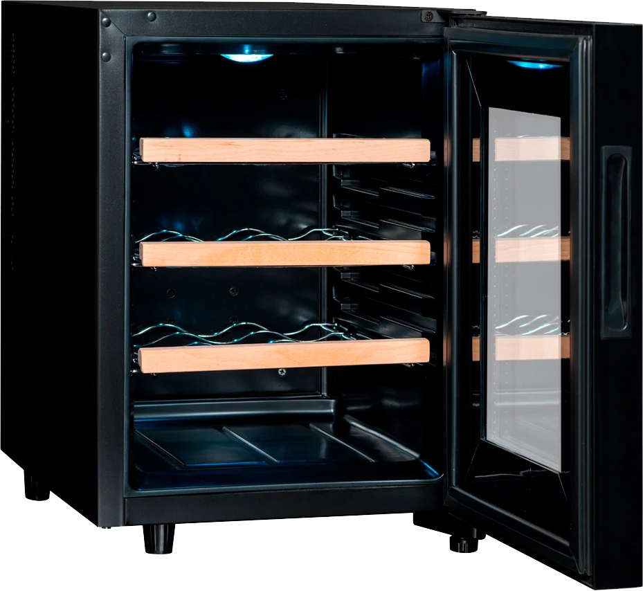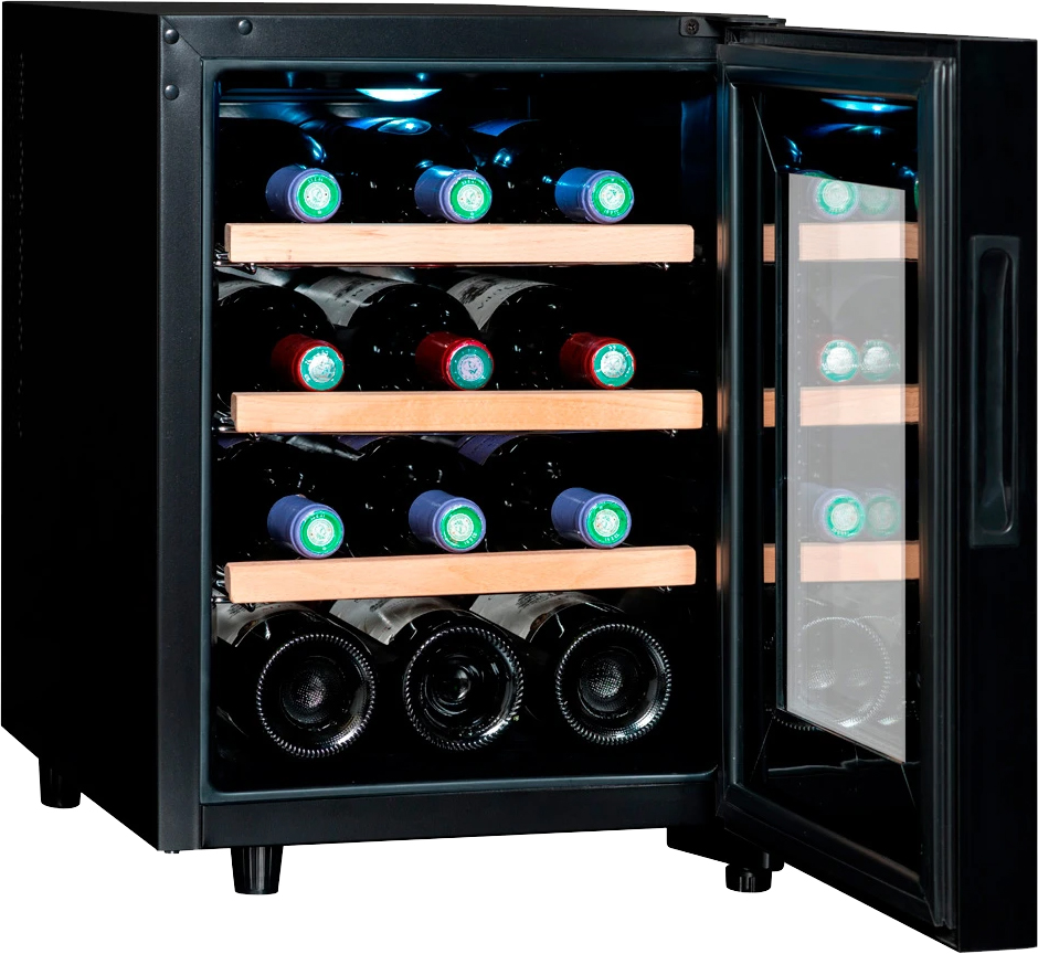 Техника работает на основе термоэлектрического охлаждения, что обеспечивает бесшумную эксплуатацию, отсутствие вибраций и высокую энергоэффективность. Такой принцип особенно важен при хранении вин, поскольку даже минимальные колебания могут нарушить процесс созревания и повлиять на вкусовые качества напитка. Диапазон регулировки температуры составляет от 11 до 18 °C, что делает шкаф оптимальным для выдержки большинства красных и некоторых белых сортов, предпочитающих чуть более тёплые условия.