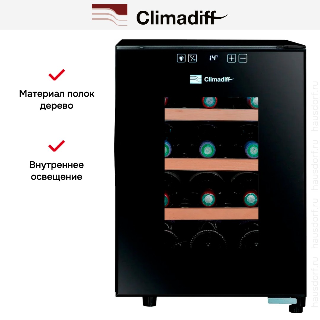 Винный шкаф Climadiff CC12 — это компактная отдельно стоящая модель, которая идеально подходит для небольших помещений и домашнего использования. Благодаря своим габаритам (48×46×34,5 см) устройство легко размещается на кухне, в гостиной или на балконе, не занимая много места и гармонично вписываясь в любой интерьер.