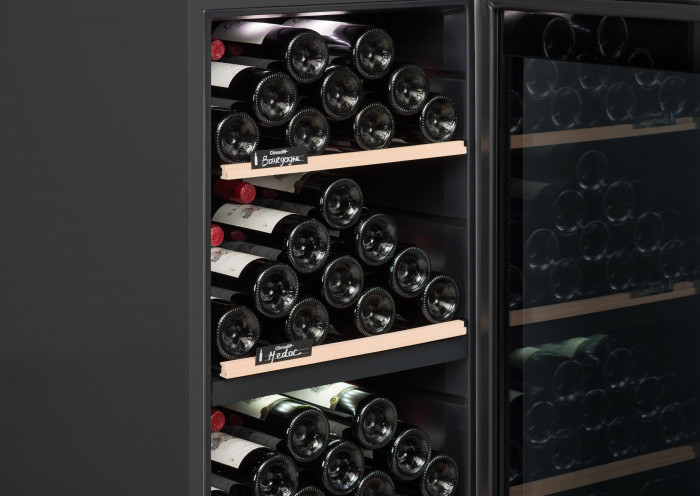 Двухтемпературные предназначены для хранения в разных условиях красного и белого вина. Трехтемпературные — для белого, красного, игристого. Мульти — система хранения из более чем трех зон с разным климатом.