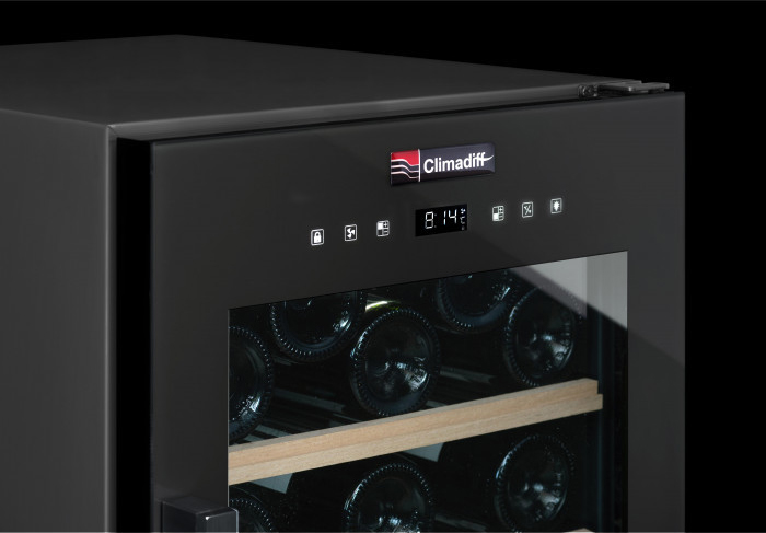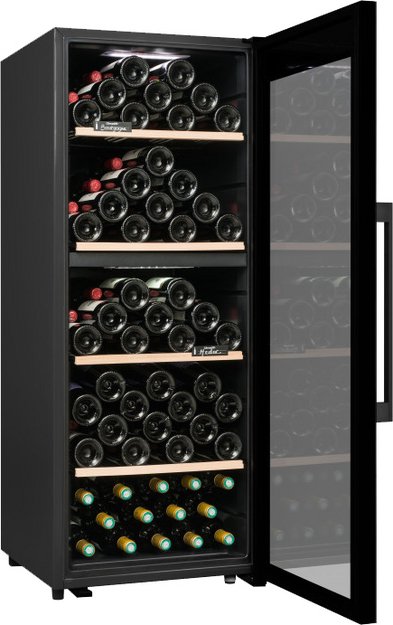 Винный холодильник Climadiff CD110B1 имеет две температурные зоны, в которых одновременно можно хранить разные сорта алкоголя и выставлять разные сочетания настроек. Он устанавливается отдельно, что удобно, если у вас есть специальное помещение — кладовая, погреб и т.д. Количество бутылок, которое можно разместить с учетом полной комплектации и из расчета объема бутылки 0,75 л, — 110 шт.