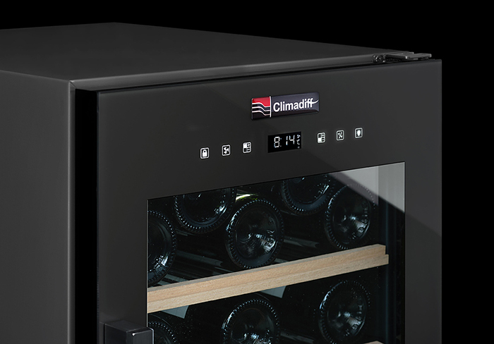Современные винные шкафы всех типов, в том числе компрессорные, темоэлектрические и абсорбционные, оснащаются электронной системой управления — кнопочной или сенсорной. Панель управления, с помощью которой производится регулировка параметров работы, может размещаться внутри винного шкафа за дверцей или снаружи в верхней части корпуса. Второй вариант более удобен, поскольку для изменения параметров не нужно открывать дверцу. Кроме того, такое расположение панели управления позволяет поддерживать более стабильную температуру в камере. Однако для больших винных шкафов в классическом стиле из ценных пород дерева предпочтительнее скрытая панель управления, которая не портит их внешний вид.