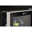 Электронное управление помогает быстро разобраться в том, как функционирует эта модель, и легко настроить все необходимые параметры. На дисплее отображаются данные, которые собирают датчики в камере. Лампочки, расположенные внутри, хорошо подсвечивают бутылки. Всего полок, на которых можно разместить коллекцию, в шкафу 4 шт.
