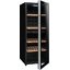 Стеклянная дверь — дополнительный изящный штрих к общему дизайну модели. Специальное покрытие защищает вино от влияния ультрафиолетовых лучей, которые проникают, если шкаф находится в солнечной комнате. Цвет корпуса — черный.