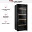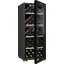 Стеклянная дверь — дополнительный изящный штрих к общему дизайну модели. Специальное покрытие защищает вино от влияния ультрафиолетовых лучей, которые проникают, если шкаф находится в солнечной комнате. Цвет корпуса — черный.