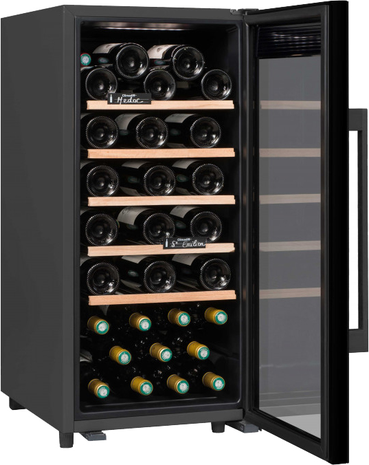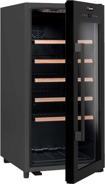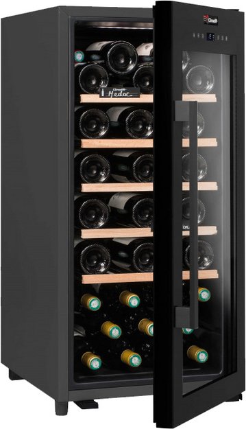 Винный холодильник Climadiff CS41B1 имеет одну температурную зону, в которой можно разместить бутылки и единовременно выставить только одну комбинацию настроек. Он устанавливается отдельно, что удобно, если у вас есть специальное помещение — кладовая, погреб и т.д. Благодаря компактным размерам данная модель — отличный выбор для офиса, гостиничного номера. Количество бутылок, которое можно разместить с учетом полной комплектации и из расчета объема бутылки 0,75 л, — 41 шт.