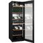 Встраиваемые холодильники для вина оснащаются специальной системой вентиляции: охлаждающая система у них находится в нижней части корпуса спереди. На такие устройства не навешивается мебельный фасад: дверца с затемненным стеклом остается на виду и открывается на достаточно широкий угол для свободного выдвижения деревянных полок.