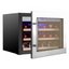 ColdVine C18-KSB1 — компактный встраиваемый холодильник для вина шириной 55 см и высотой 45 см. Модель можно использовать для дома и офиса, она подойдет для установки в кабинете, спальне, кухне или офисе. Вместимость этого винного холодильника — 18 бутылок типа Бордо, которые можно охладить до нужной температуры перед подачей, общий объем составляет 65 литров. Стальной корпус черного цвета дополнен дверцей со стеклопакетом в рамке из нержавеющей стали с удобной стальной ручкой. Тонированное многослойное стекло защищает коллекционные вина от воздействия ультрафиолетовых лучей. При необходимости дверцу можно перевесить с правой на левую сторону.