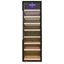 Дверца у большинства винных шкафов изготавливается из многослойного тонированного стекла. Такой материал, с одной стороны, позволяет оценивать коллекцию вин визуально, не открывая дверцу, в условиях стабильной температуры и влажности. С другой стороны, затемненное стекло с УФ-фильтром в виде напыления или специальной пленки надежно изолирует винные бутылки негативного воздействия ультрафиолетового излучения. Несколько слоев стекла обеспечивают при этом дополнительную защиту. Очень часто стекло в дверце заключается в рамку из дерева или металла. Натуральный или окрашенный металл или дерево не только способствуют прочности конструкции, но и превращают винный холодильник, особенно отдельно стоящий, в эффектный элемент обстановки.