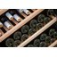 Полки в винных шкафах позволяют размещать бутылки для хранения в горизонтальном положении. Это необходимо, чтобы пробка постоянно смачивалась жидкостью и не пересыхала. Плотно закрытая пробка гарантирует, что внутрь бутылки не проникнет наружный воздух. Кислород, содержащийся в воздухе, может стать причиной ухудшения вкуса вина и даже его скисания. Кроме того, горизонтальное положение позволяет лучше оценить количество осадка. Материал изготовления полок выбирается, исходя из требований, предъявляемых к содержанию коллекции вин. Одним из основных требования является отсутствие или максимальное сокращение вибрации и хорошая фиксация бутылок на месте хранения. Даже если полка выдвигается, бутылки должны оставаться на своем месте. Второе требование исключает применение стеклянных полок, как в обычном холодильнике: на них почти невозможно зафиксировать бутылки.