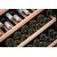 Полки в винных шкафах позволяют размещать бутылки для хранения в горизонтальном положении. Это необходимо, чтобы пробка постоянно смачивалась жидкостью и не пересыхала. Плотно закрытая пробка гарантирует, что внутрь бутылки не проникнет наружный воздух. Кислород, содержащийся в воздухе, может стать причиной ухудшения вкуса вина и даже его скисания. Кроме того, горизонтальное положение позволяет лучше оценить количество осадка. Материал изготовления полок выбирается, исходя из требований, предъявляемых к содержанию коллекции вин. Одним из основных требования является отсутствие или максимальное сокращение вибрации и хорошая фиксация бутылок на месте хранения. Даже если полка выдвигается, бутылки должны оставаться на своем месте. Второе требование исключает применение стеклянных полок, как в обычном холодильнике: на них почти невозможно зафиксировать бутылки.