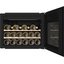 Стеклянная дверь — дополнительный изящный штрих к общему дизайну модели. Специальное покрытие защищает вино от влияния ультрафиолетовых лучей, которые проникают, если шкаф находится в солнечной комнате. Цвет корпуса — черный.