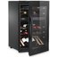 Производители предлагают винные шкафы, оснащенные одной, двумя, тремя и четырьмя камерами, которые могут располагаться как друг под другом, так бок и бок. Самые популярные — однокамерные модели, ассортимент которых особенно широк, но втором месте — двухкамерные. Над заметить, что количество камер не зависит напрямую от габаритов изделия: например, однокамерные модели увеличенных габаритов — далеко не редкость. Их высота может варьироваться в пределах от 14 см до 219 см, а ширина — от 13 см до 150 см.
