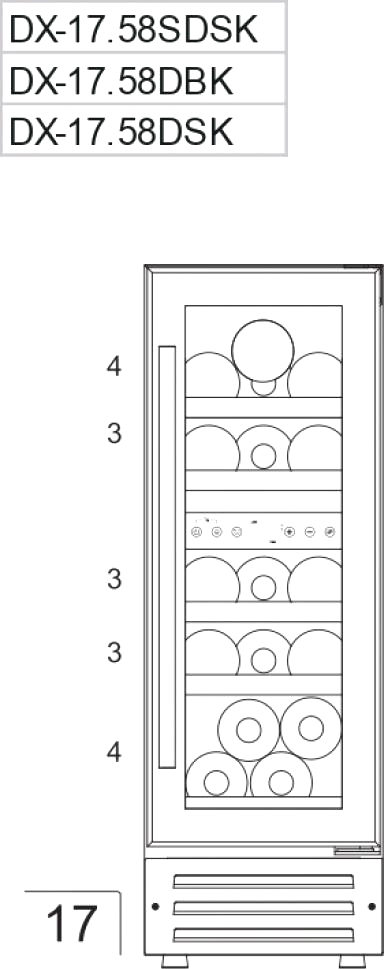 Стандартная вместительность рассчитывается по количеству бутылок «Бордо» 0,75 л. Это число также показывает максимальную загрузку при полной комплектации (полок, ящиков и других элементов).