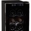 Винный шкаф Dunavox DX-12.35S — небольшая и компактная модель, которая идеально впишется в интерьер даже небольшого помещения. Не смотря на свои габариты, изделие способно вместить до 12 бутылок, что вполне достаточно для домашней эксплуатации. Изделия располагаются горизонтально — для этого имеются металлические хромированные полочки волнообразной формы. Они хорошо удерживают бутылки, не позволяя им биться друг о дружку. Внутреннее освещение повышает комфорт при эксплуатации, так как идеально освещает камеру. Настройка параметров работы происходит с корпуса модели. Сенсорные кнопки имеют графические подсказки, поэтому в них легко разобраться. Винный шкаф Дунавокс DX-12.35S — это тихая работа. Максимальный уровень шума составляет всего лишь 30 дБ — прибор практически не слышно. В комплект входит инструкция.