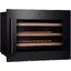 Встраиваемые холодильники для вина оснащаются специальной системой вентиляции: охлаждающая система у них находится в нижней части корпуса спереди. На такие устройства не навешивается мебельный фасад: дверца с затемненным стеклом остается на виду и открывается на достаточно широкий угол для свободного выдвижения деревянных полок.