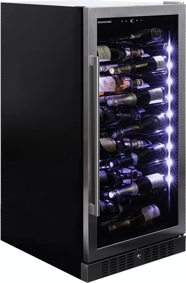 Винный холодильник Dunavox DX-70.258C имеет одну температурную зону, в которой можно разместить бутылки и единовременно выставить только одну комбинацию настроек. Он устанавливается отдельно, что удобно, если у вас есть специальное помещение — кладовая, погреб и т.д. Количество бутылок, которое можно разместить с учетом полной комплектации и из расчета объема бутылки 0,75 л, — 70 шт.