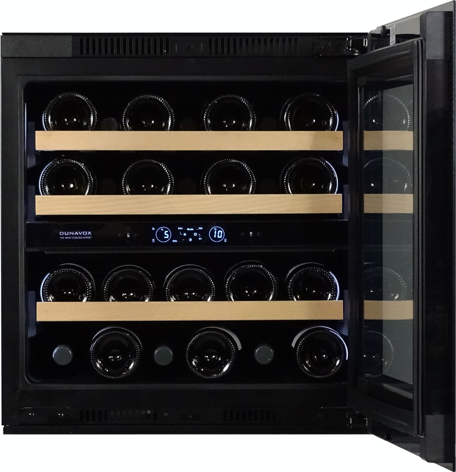 Винный холодильник Dunavox DVH-25.65DMB.TO имеет две температурные зоны, в которых одновременно можно хранить разные сорта алкоголя и выставлять разные сочетания настроек. Он встраивается в нишу, что удобно, если у вас ограничен метраж помещения. Благодаря компактным размерам данная модель — отличный выбор для офиса, гостиничного номера. Количество бутылок, которое можно разместить с учетом полной комплектации и из расчета объема бутылки 0,75 л, — 25 шт.
