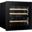 Стеклянная дверь — дополнительный изящный штрих к общему дизайну модели. Специальное покрытие защищает вино от влияния ультрафиолетовых лучей, которые проникают, если шкаф находится в солнечной комнате. Хранение становится еще безопаснее и герметичнее благодаря нескольким слоям стекол. Цвет корпуса — черный матовый. Дверь можно перевесить на другую сторону, поэтому вариантов размещения его в доме становится больше. Доводчик делает открытие и закрытие плавным.