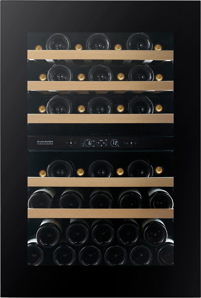 Винный холодильник Dunavox DVH-44.120DMB.TO имеет две температурные зоны, в которых одновременно можно хранить разные сорта алкоголя и выставлять разные сочетания настроек. Он встраивается в нишу, что удобно, если у вас ограничен метраж помещения. Благодаря компактным размерам данная модель — отличный выбор для офиса, гостиничного номера. Количество бутылок, которое можно разместить с учетом полной комплектации и из расчета объема бутылки 0,75 л, — 44 шт.