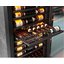 Электронное управление помогает быстро разобраться в том, как функционирует эта модель, и легко настроить все необходимые параметры. На дисплее отображаются данные, которые собирают датчики в камере. Лампочки, расположенные внутри, хорошо подсвечивают бутылки. Всего полок, на которых можно разместить коллекцию, в шкафу 12 шт.