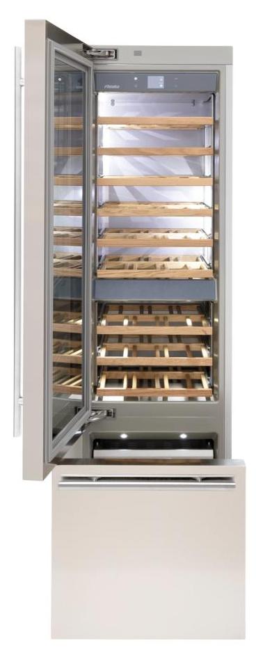 Винный холодильник Fhiaba KS601TWT3 имеет несколько температурных зон, в которых одновременно можно хранить разные сорта алкоголя и выставлять разные сочетания настроек. Он встраивается в нишу, что удобно, если у вас ограничен метраж помещения. Количество бутылок, которое можно разместить с учетом полной комплектации и из расчета объема бутылки 0,75 л, — 54 шт.