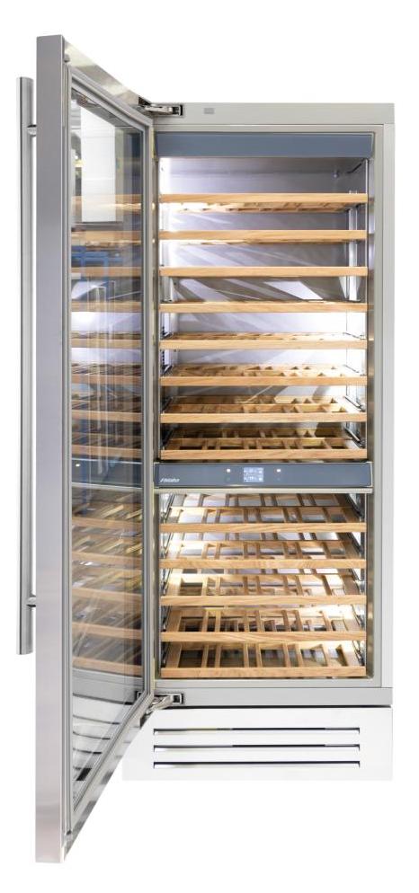 Винный холодильник Fhiaba KS750FW3 имеет две температурные зоны, в которых одновременно можно хранить разные сорта алкоголя и выставлять разные сочетания настроек. Он встраивается в нишу, что удобно, если у вас ограничен метраж помещения. Количество бутылок, которое можно разместить с учетом полной комплектации и из расчета объема бутылки 0,75 л, — 117 шт.