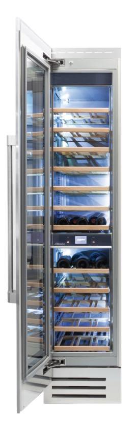 Ширина винного шкафа, как и другие их габариты, обязательно учитывается при выборе модели для домашнего или профессионального использования. Встраиваемые и отдельно стоящие модели выпускаются в самом широком ассортименте, так что разброс значений максимально велик. Неизменным спросом пользуются винные шкафы стандартной ширины — от 40 до 80 см, в современном и классическом стиле. Для встраиваемых шкафов наиболее удобной является ширина 60 см, позволяющая устанавливать их в кухонную тумбу или колонну. Вместимость их может быть самой различной и зависит в большей степени от высоты прибора. Маленькие винные шкафы с размещением на столешнице или даже с креплением к стене, рассчитанные на хранение от одной до десяти бутылок, могут иметь минимальную ширину от 13 см. На полках у них обычно помещается не более 5 бутылок, и используются они для охлаждения вина перед подачей. Большие винные шкафы с несколькими камерами и температурными зонами для длительного хранения и созревания разных сортов вина могут иметь ширину до 180 см, а максимальное значение этого параметра может составить 300 см. Как правило, это отдельно стоящие модели в деревянном корпусе с камерами side-by-side.