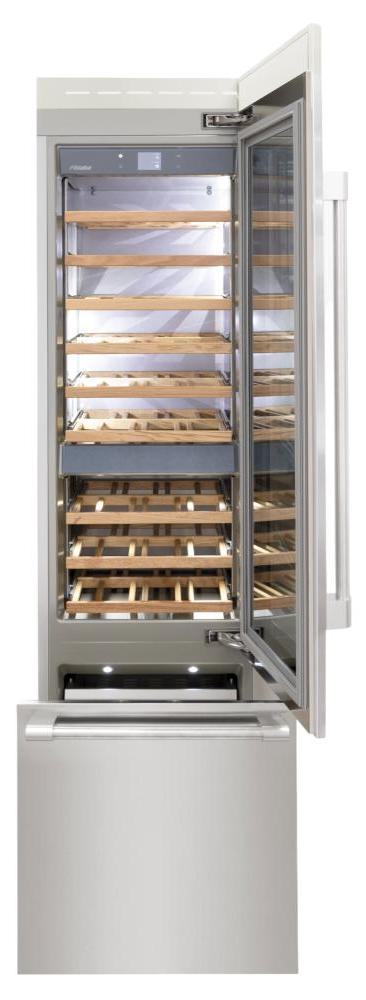 Винный холодильник Fhiaba RS601TWT6 имеет несколько температурных зон, в которых одновременно можно хранить разные сорта алкоголя и выставлять разные сочетания настроек. Он встраивается в нишу, что удобно, если у вас ограничен метраж помещения. Количество бутылок, которое можно разместить с учетом полной комплектации и из расчета объема бутылки 0,75 л, — 54 шт.