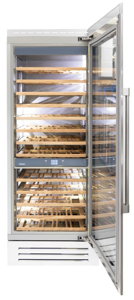 Винный холодильник Fhiaba RS750FW6 имеет две температурные зоны, в которых одновременно можно хранить разные сорта алкоголя и выставлять разные сочетания настроек. Он встраивается в нишу, что удобно, если у вас ограничен метраж помещения. Количество бутылок, которое можно разместить с учетом полной комплектации и из расчета объема бутылки 0,75 л, — 117 шт.
