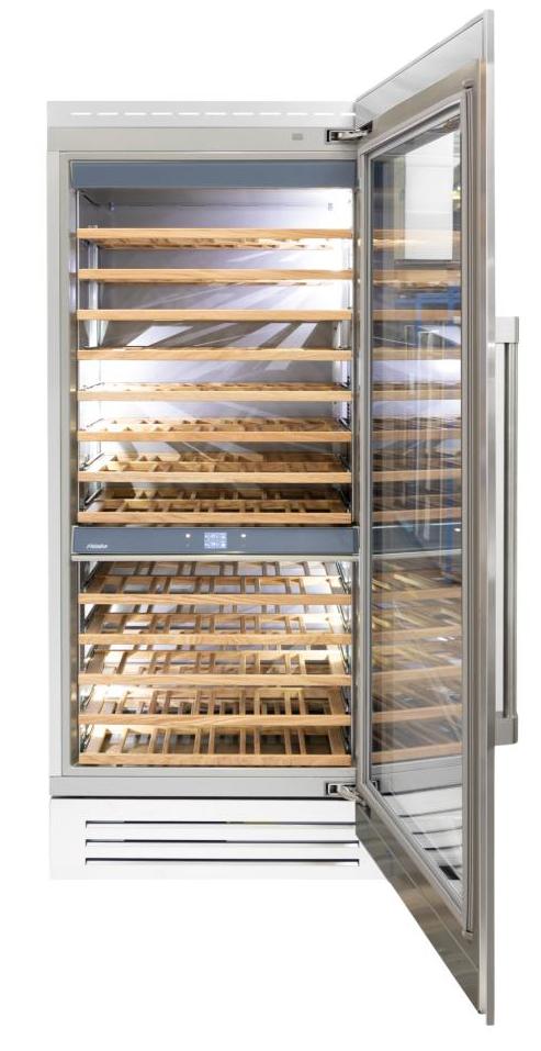Винный холодильник Fhiaba RS900FW6 имеет две температурные зоны, в которых одновременно можно хранить разные сорта алкоголя и выставлять разные сочетания настроек. Он встраивается в нишу, что удобно, если у вас ограничен метраж помещения. Количество бутылок, которое можно разместить с учетом полной комплектации и из расчета объема бутылки 0,75 л, — 156 шт.