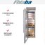 Электронное управление помогает быстро разобраться в том, как функционирует эта модель, и легко настроить все необходимые параметры. На дисплее отображаются данные, которые собирают датчики в камере. Лампочки, расположенные внутри, хорошо подсвечивают бутылки. Всего полок, на которых можно разместить коллекцию, в шкафу 13 шт.