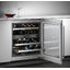 Встраиваемые холодильники для вина оснащаются специальной системой вентиляции: охлаждающая система у них находится в нижней части корпуса спереди. На такие устройства не навешивается мебельный фасад: дверца с затемненным стеклом остается на виду и открывается на достаточно широкий угол для свободного выдвижения деревянных полок.