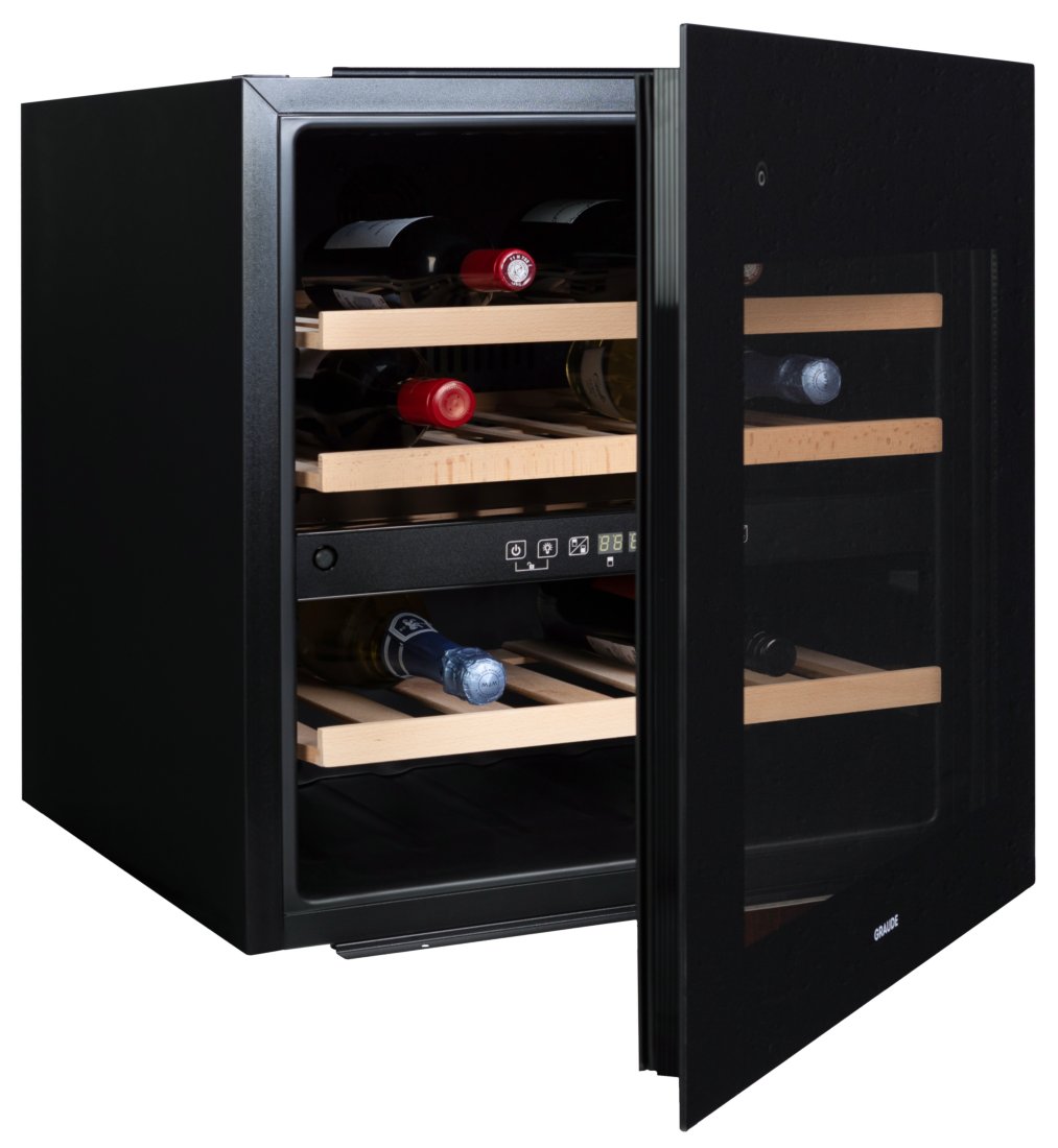Винный холодильник Graude FWK 60.2 имеет две температурные зоны, в которых одновременно можно хранить разные сорта алкоголя и выставлять разные сочетания настроек. Он встраивается в нишу, что удобно, если у вас ограничен метраж помещения. Благодаря компактным размерам данная модель — отличный выбор для офиса, гостиничного номера. Количество бутылок, которое можно разместить с учетом полной комплектации и из расчета объема бутылки 0,75 л, — 36 шт.