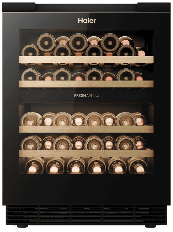 Винный холодильник Haier BIWC44GDAI имеет две температурные зоны, в которых одновременно можно хранить разные сорта алкоголя и выставлять разные сочетания настроек. Он устанавливается отдельно, что удобно, если у вас есть специальное помещение — кладовая, погреб и т.д. Благодаря компактным размерам данная модель — отличный выбор для офиса, гостиничного номера. Количество бутылок, которое можно разместить с учетом полной комплектации и из расчета объема бутылки 0,75 л, — 44 шт.