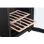 Стеклянная дверь — дополнительный изящный штрих к общему дизайну модели. Специальное покрытие защищает вино от влияния ультрафиолетовых лучей, которые проникают, если шкаф находится в солнечной комнате. Цвет корпуса — черный.