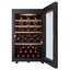 Стеклянная дверь — дополнительный изящный штрих к общему дизайну модели. Специальное покрытие защищает вино от влияния ультрафиолетовых лучей, которые проникают, если шкаф находится в солнечной комнате. Цвет корпуса — черный. Дверь можно перевесить на другую сторону, поэтому вариантов размещения его в доме становится больше.