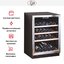 Современные винные шкафы всех типов, в том числе компрессорные, темоэлектрические и абсорбционные, оснащаются электронной системой управления — кнопочной или сенсорной. Панель управления, с помощью которой производится регулировка параметров работы, может размещаться внутри винного шкафа за дверцей или снаружи в верхней части корпуса. Второй вариант более удобен, поскольку для изменения параметров не нужно открывать дверцу. Кроме того, такое расположение панели управления позволяет поддерживать более стабильную температуру в камере. Однако для больших винных шкафов в классическом стиле из ценных пород дерева предпочтительнее скрытая панель управления, которая не портит их внешний вид.