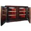 Реже выпускаются винные шкафы со сплошными дверцами из металла или дерева. «Глухая» дверь гарантирует гораздо лучшую сохранность коллекции, поскольку попадание солнечных лучей совершенно исключается. Кроме того, сплошная дверь способствует созданию единого стиля интерьера. Недостатком ее является та же непрозрачность: чтобы продемонстрировать коллекцию или отыскать ту или иную бутылку, дверцу приходится открыть.
