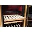 Полки в винных шкафах позволяют размещать бутылки для хранения в горизонтальном положении. Это необходимо, чтобы пробка постоянно смачивалась жидкостью и не пересыхала. Плотно закрытая пробка гарантирует, что внутрь бутылки не проникнет наружный воздух. Кислород, содержащийся в воздухе, может стать причиной ухудшения вкуса вина и даже его скисания. Кроме того, горизонтальное положение позволяет лучше оценить количество осадка. Материал изготовления полок выбирается, исходя из требований, предъявляемых к содержанию коллекции вин. Одним из основных требования является отсутствие или максимальное сокращение вибрации и хорошая фиксация бутылок на месте хранения. Даже если полка выдвигается, бутылки должны оставаться на своем месте. Второе требование исключает применение стеклянных полок, как в обычном холодильнике: на них почти невозможно зафиксировать бутылки.