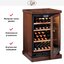 Электронное управление помогает быстро разобраться в том, как функционирует эта модель, и легко настроить все необходимые параметры. На дисплее отображаются данные, которые собирают датчики в камере. Цифровой термометр позволяет контролировать, соблюдаются ли оптимальные условия. Лампочки, расположенные внутри, хорошо подсвечивают бутылки. Всего полок, на которых можно разместить коллекцию, в шкафу 4 шт.