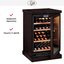 Дверца у большинства винных шкафов изготавливается из многослойного тонированного стекла. Такой материал, с одной стороны, позволяет оценивать коллекцию вин визуально, не открывая дверцу, в условиях стабильной температуры и влажности. С другой стороны, затемненное стекло с УФ-фильтром в виде напыления или специальной пленки надежно изолирует винные бутылки негативного воздействия ультрафиолетового излучения. Несколько слоев стекла обеспечивают при этом дополнительную защиту. Очень часто стекло в дверце заключается в рамку из дерева или металла. Натуральный или окрашенный металл или дерево не только способствуют прочности конструкции, но и превращают винный холодильник, особенно отдельно стоящий, в эффектный элемент обстановки.