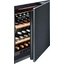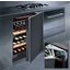 Встраиваемые холодильники для вина оснащаются специальной системой вентиляции: охлаждающая система у них находится в нижней части корпуса спереди. На такие устройства не навешивается мебельный фасад: дверца с затемненным стеклом остается на виду и открывается на достаточно широкий угол для свободного выдвижения деревянных полок.